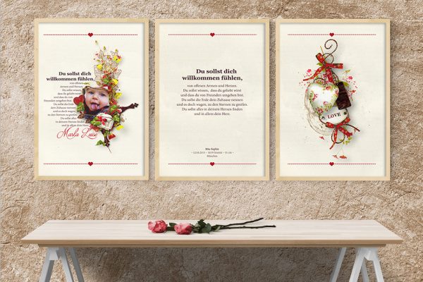 Name, Geburtsdatum, Gewicht, Größe, Geburtsort bitte am Ende der Bestellung unter “Bestellnotiz” eintragen. Foto bitte per Mail an kunstdrucke[at]fischerunikate.de senden.